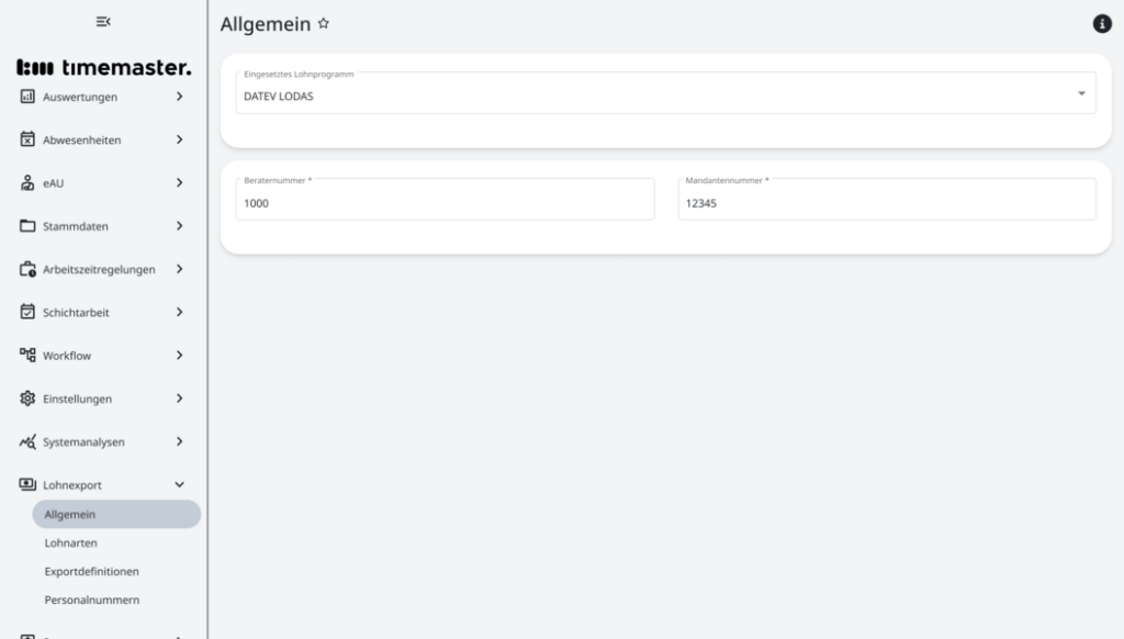 Zeit ist Geld: Die monatliche Entgeltabrechnung ist eine notwendige, aber zeitaufwendige und lästige Pflicht für jeden Arbeitgeber. Wenn Sie den Aufwand und potentielle Fehler in Ihrem Personalbüro und beim Steuerberater reduzieren möchten, ist das Lohnexportmodul das richtige für Sie. Alle für die Abrechnung wichtigen Bewegungsdaten werden für die Lohnprogramme DATEV Lohn und Gehalt, DATEV Lodas und Lexware lohn+gehalt in Timemaster aufbereitet. Beispielsweise ordnet Timemaster die erfassten Stunden der Mitarbeiter den definierten Lohnarten zu und fasst diese als Monatssumme zusammen. Statt langer Excel- oder Papierlisten bekommt die Lohnbuchhaltung eine Datei, die in das entsprechende Lohnprogramm importiert und zeitsparend verarbeitet werden kann.
